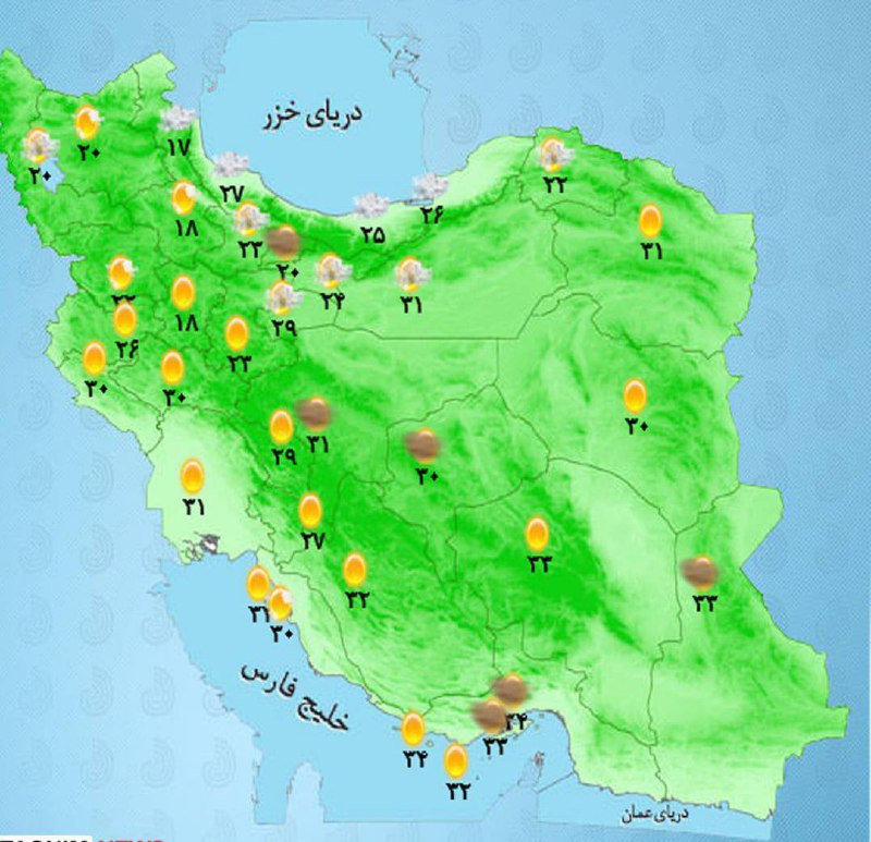 🔹امروز در برخی نقاط آذربایجان شرقی، آذربایجان غربی، اردبیل، گیلان، مازندران و غرب گلستان افزایش ابر، رگبار پراکنده، گاهی رعدوبرق و وزش باد روی میدهد.